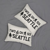 Show your Seattle pride with this cozy accent pillow featuring the bold Two Oh Six design accented by a small axe, sasquatch, and tree flourish. It’s a stylish nod to the city’s roots and a perfect way to bring a touch of local charm into your home.