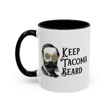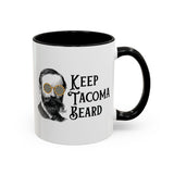 Strong brew, strong beard, strong city. The Keep Tacoma Beard mug features a vintage-style bearded dude in bold sunglasses, perfect for anyone who knows the 253 is all about grit, pride, and a little bit of attitude.