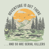 For true crime fans who love the great outdoors, this adventure is out there and so are serial killers tote keeps it real β and just a little unsettling. Featuring the bold phrase Adventure Is Out There... And So Are Serial Killers, itβs the perfect mix of dark humor and wanderlust for hikes, camping trips, or road adventures that might get a little too quiet.