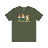 The chillin with my gnomies t shirt is soft, lightweight, and made for everyday comfort. The breathable cotton fabric feels smooth against your skin, while the flattering unisex fit makes it easy to style however you like. Perfect for relaxing weekends, outdoor hangs, or casual days when you just want to spread a little fun.