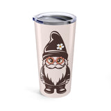 Peace, love, and gnome vibes. This 20 oz. stainless steel tumbler features a hippie gnome rocking daisy glasses and a daisy-topped hat - bringing a playful splash of retro charm to your drinkware.