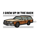 Big family? No problem! The I Grew Up in the Back tee features the legendary late 80s Oldsmobile Custom Cruiser — the ultimate childhood ride for road trips, tailgate seats, and backwards-facing memories. This shirt is a tribute to the long hauls and good times that started way in the back.