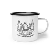 Start your day the lumberjack way with our I Love Morning Wood camping mug. Featuring a rugged outdoorsman perched on a log with his trusty axe, this mug brings just the right mix of humor and wilderness vibes. This one's perfect for folks who love a good pun and the great outdoors. Durable, cheeky, and built for camp life.